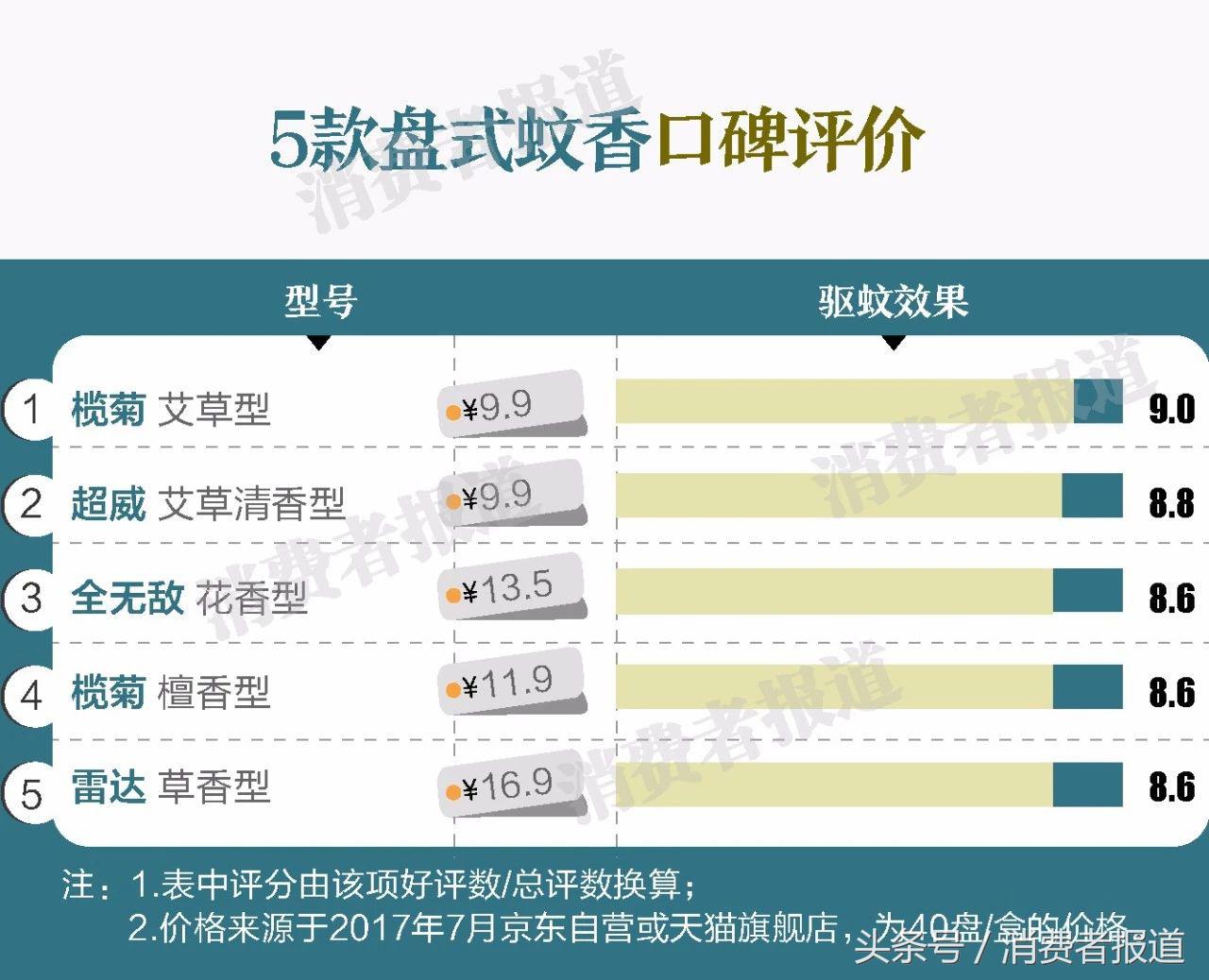 消費(fèi)者評價數(shù)據(jù)顯示,盤式蚊香的驅(qū)蚊效果是所有驅(qū)蚊產(chǎn)品中好的,在電熱蚊香液和滅蚊燈之上,而且價格便宜,10元左右能買到40盤左右,即滿足40夜的使用,使用時也無需電源驅(qū)動(電熱蚊香液、滅蚊燈需要)。