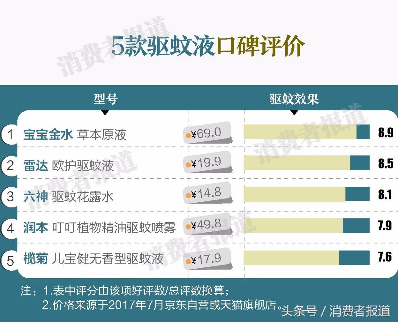 評價數(shù)據(jù)顯示,5款驅(qū)蚊液中,寶寶金水草本原液的驅(qū)蚊效果較好,評論中,消費(fèi)者反映“給寶寶洗澡用較好”、“止癢”、“寶寶沒有被咬”等。