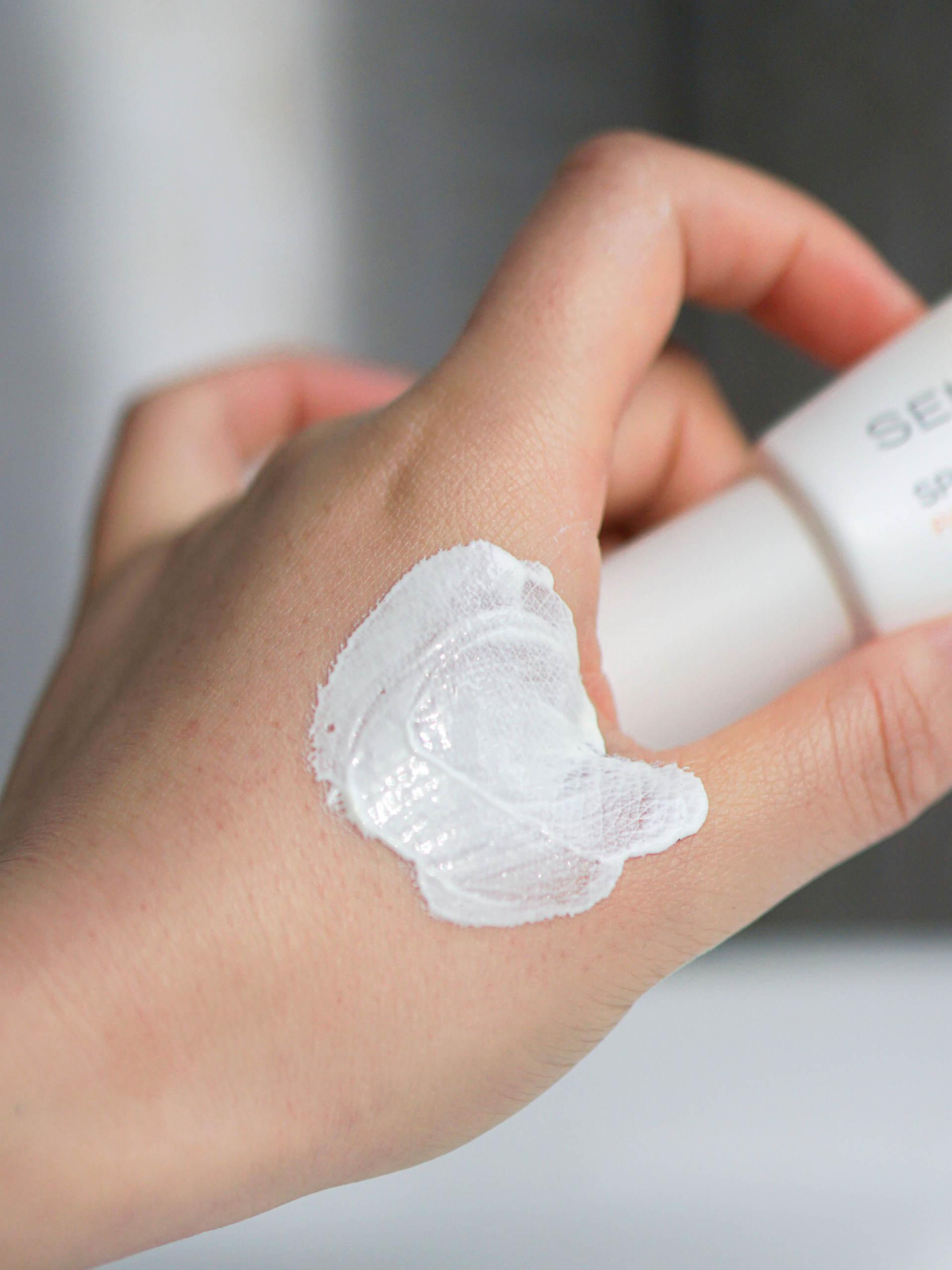 森芝璣這款添加物里我個人比較看中的就是抗氧化的富勒烯和葡糖基蘆丁了,所以不說概念,防曬傷和曬黑上還是有一定果的。膚感上我覺得也比較潤,可能是物理防曬劑靠后的關系。