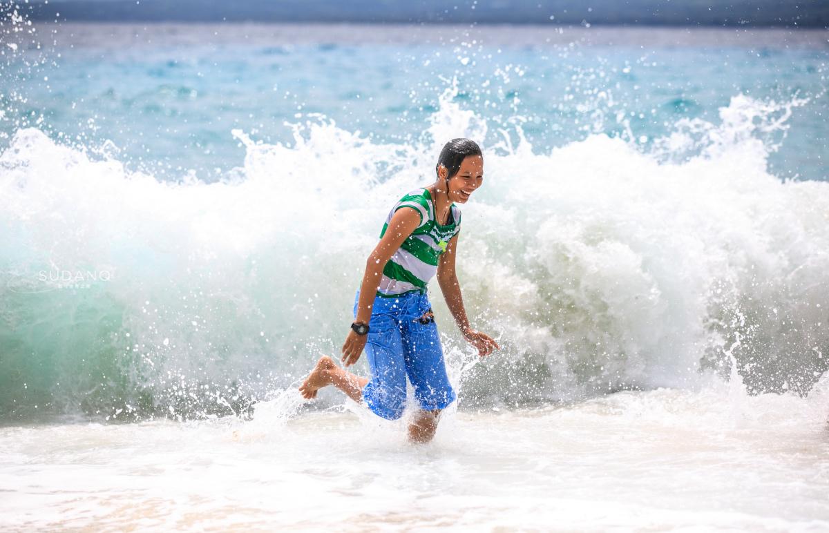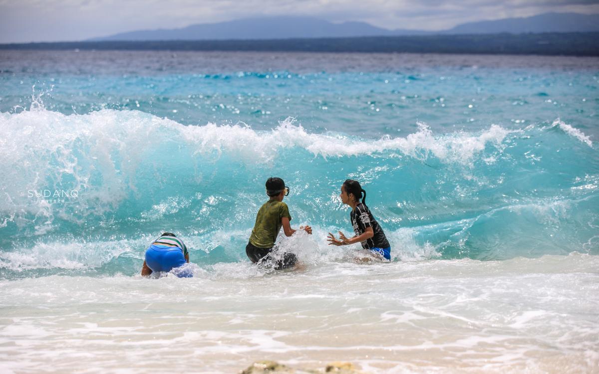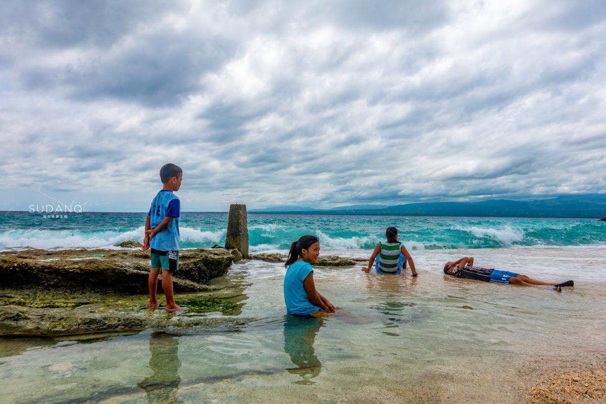 但不管風(fēng)浪多大,他們依然玩得開心,臉上的笑容是那樣的燦爛。不知道大家有沒有發(fā)現(xiàn),許多群島組成的的人們都十分喜歡笑,不論是去泰國(guó),還是菲律賓,包括我之前去過的所羅門群島、瓦努阿圖、斐濟(jì)、大溪地、薩摩亞等,遇到的當(dāng)?shù)厝硕己軔坌?,且一定?huì)露出牙齒來。這一點(diǎn),讓我感覺好,不僅熱情而且自信。
