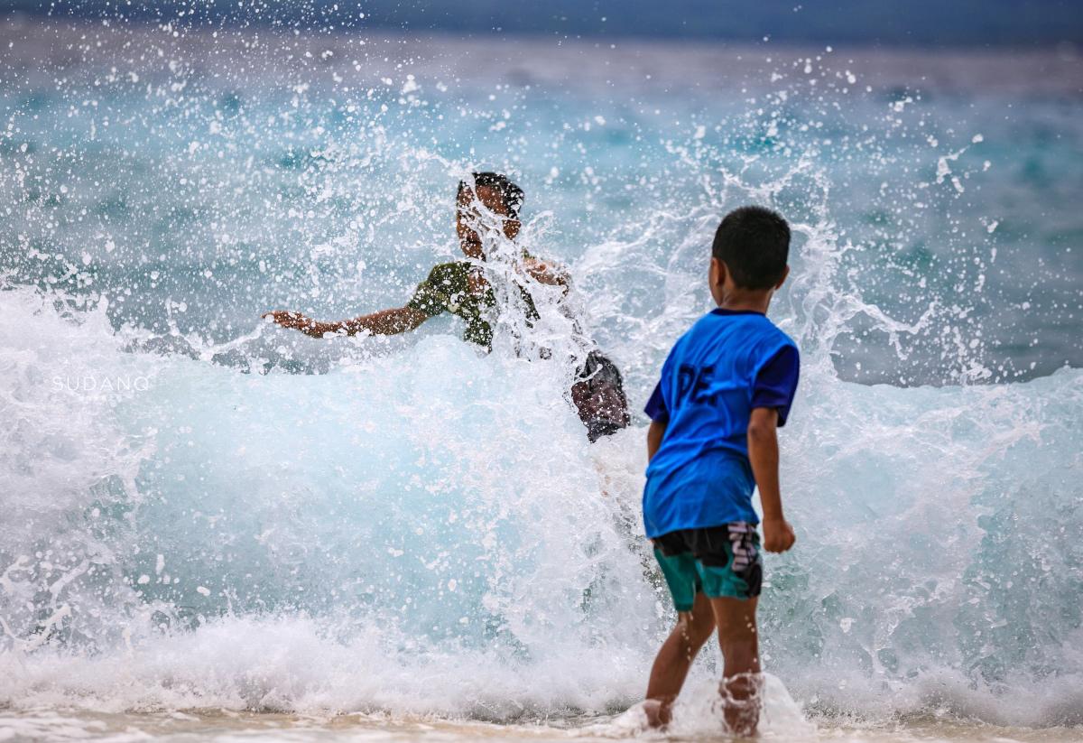 尤其是在環(huán)境好的海域,他們?nèi)粝胍撍?,真的是隨時(shí)隨地。雖然風(fēng)浪大,但孩子們并不畏懼,反而更是興奮起來,紛紛跑過去,似乎要與海浪一起瘋狂。