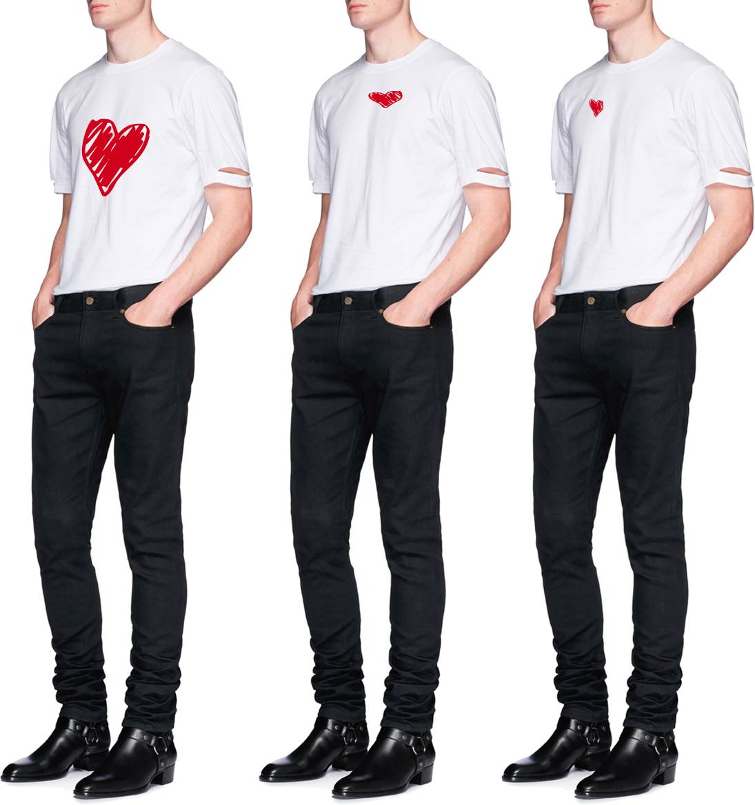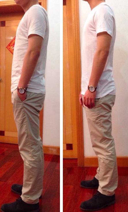 男生雖然沒有胸口花紋變形的問題,道理也類似,圖案高,也會顯得人更高一些。