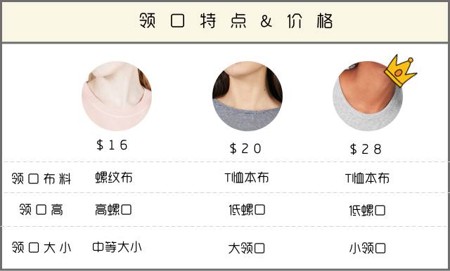 下面三款是Everlane的三款T恤,分別是$16、$20、$28檔次的,領(lǐng)口的工藝,基本上鉚釘了T恤的價格。