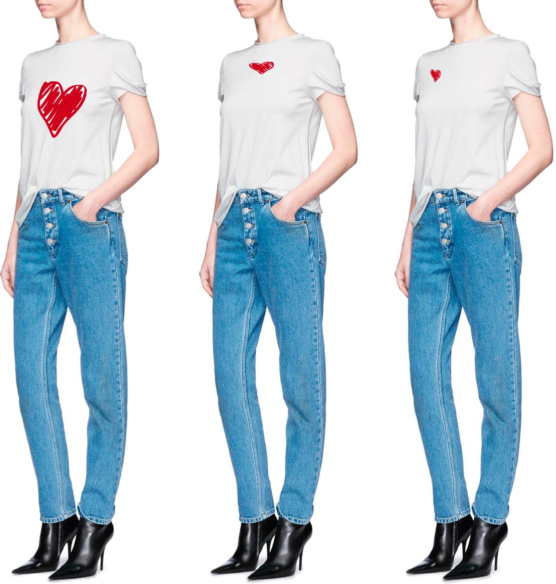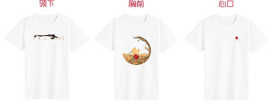 T恤上印花大多位于領(lǐng)下、胸前、心口三種個置。
