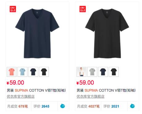 // 不同品牌的T恤的版型
