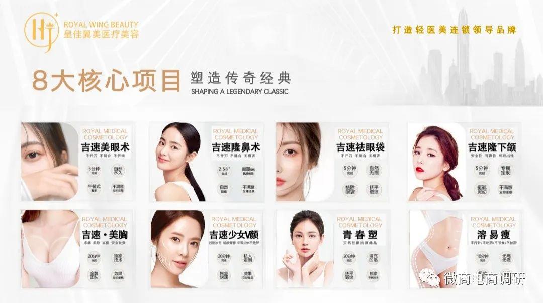 人們?yōu)榱俗非蟆懊馈?,?huì)經(jīng)常去美容院做一些保養(yǎng)、護(hù)理、美白之類的項(xiàng)目,一些女性為了五官更加精致更是對(duì)整形情有獨(dú)鐘。近日,微商電商調(diào)研注意到,皇佳翼美醫(yī)療美容以“不開(kāi)刀、不縫合、苦、美、走”的整形手術(shù)吸引了大量女性顧客的注意。