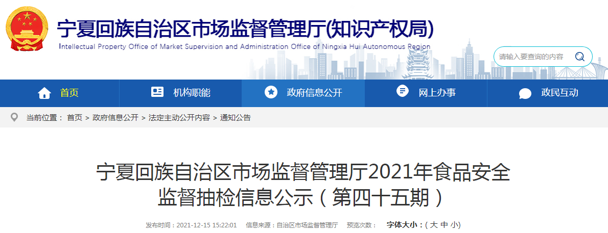 中國質(zhì)量新聞網(wǎng)訊 12月15日,寧夏回族自治區(qū)市場監(jiān)管廳網(wǎng)站公示2021年食品監(jiān)督抽檢信息(第四十五期)。本次抽檢飲料樣品35批次,34批次合格,1批次不合格。