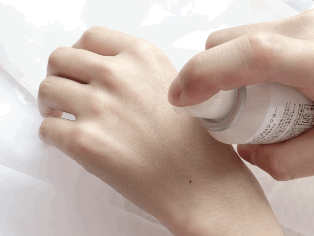 試用之后發(fā)現(xiàn),噴射出霧狀的水珠,能很均勻地停留在皮膚上。