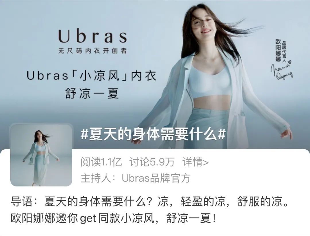 近期Ubras圍繞夏日關(guān)鍵詞“涼”拍攝的一支美學(xué)大片,這支視頻上線后不僅引發(fā)了眾多明星達人的熱議,還迅速登上微博熱搜,獲得了全網(wǎng)超1億的閱讀關(guān)注。