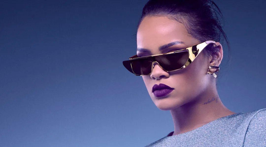 上圖,蕾哈娜為dior的一款墨鏡所做的廣告。