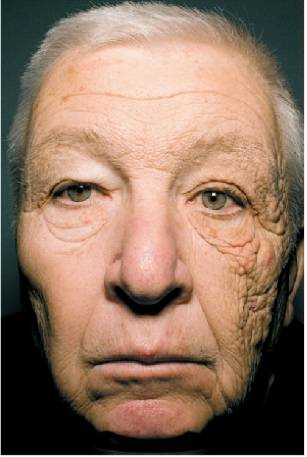 這張圖片來自“The New England Journal of Medicine”。圖中是一位69歲老先生的臉。左右臉的差距,是因?yàn)樗_了28年的卡車,左臉受到的陽光照射比右臉要多得多。這就是差距!