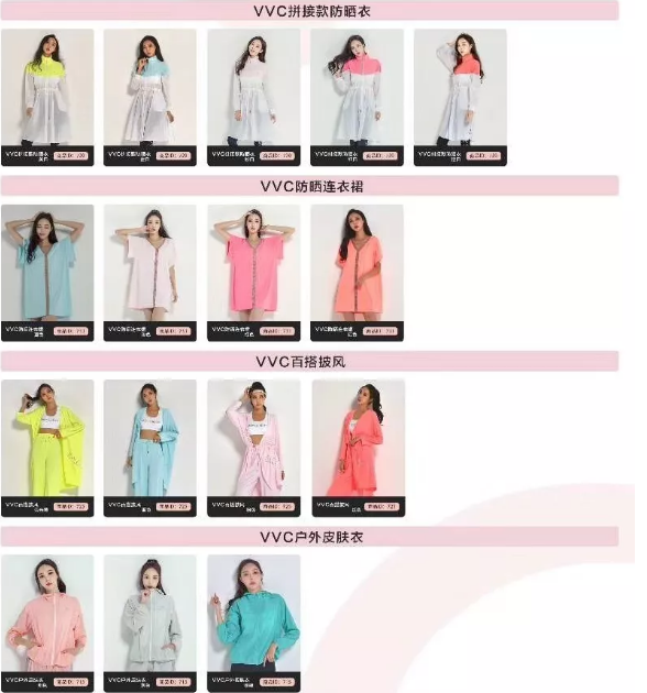 VVC防曬產(chǎn)品采用了醫(yī)學與光學美容結(jié)合的特殊布料蕾羅娜布料。這種特殊的布料可以把不同的光線分離出來,阻隔99%紫外線,萃取紅/黃/藍三色有益光,以達到防曬美膚抗衰老的目的。