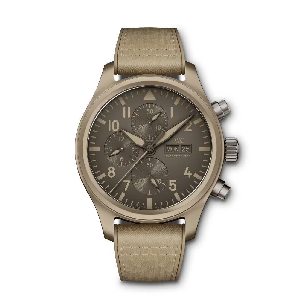 飛行員系列TOP GUN海軍空戰(zhàn)部隊(duì)計(jì)時腕表“莫哈維沙漠”特別版 (型號:IW389103)作為第一款采用沙色陶瓷表殼的IWC萬國表飛行員腕表, 其設(shè)計(jì)靈感源自莫哈維沙漠?(Mojave?Desert),即美國海軍大的陸上基地——中國湖海軍航空武器試驗(yàn)地?(Naval?Air?Weapons?Station?China?Lake)?所在地。其色彩由氧化鋯與 其他金屬氧化物共同打造而成,高度匹配TOP GUN飛行員 所著飛行制服。