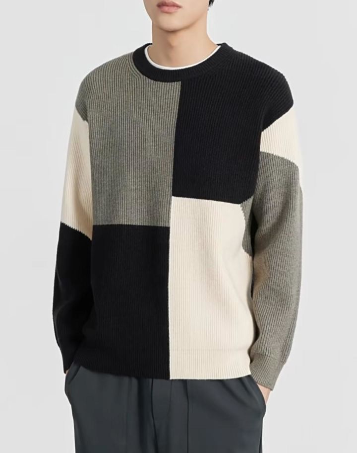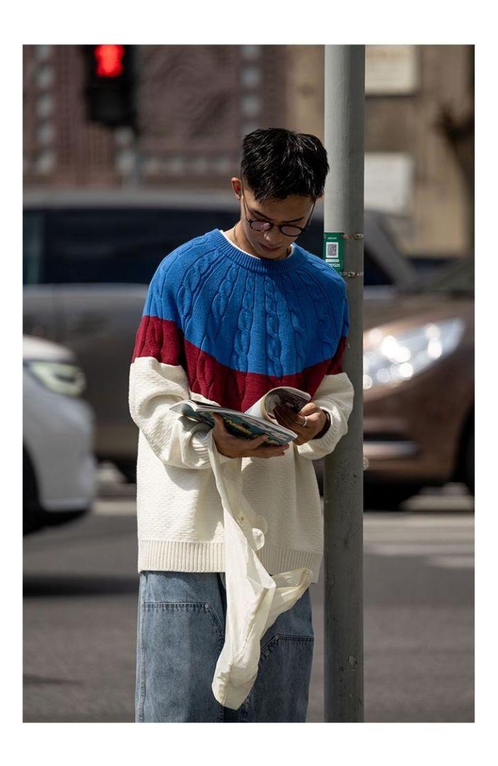 甚至大面積色塊拼接的針織衫毫無違和感,