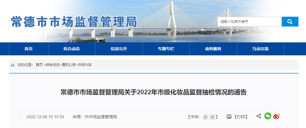中國質(zhì)量新聞網(wǎng)訊 12月8日,湖南省常德市市場監(jiān)督管理局發(fā)布2022年市級化妝品監(jiān)督抽檢情況。為保障公眾用妝,根據(jù)《化妝品監(jiān)督管理條例》相關(guān)規(guī)定和常德市市級化妝品監(jiān)督抽檢工作計劃,2022年該局對全市轄區(qū)內(nèi)化妝品經(jīng)營單位20批次的化妝品進(jìn)行了抽檢,檢驗(yàn)結(jié)果全部符合規(guī)定。