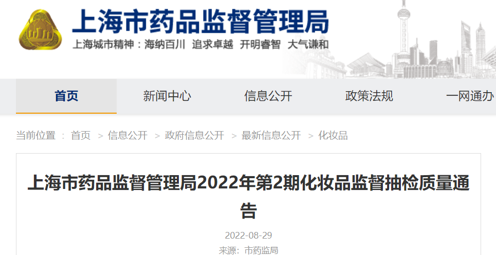 中國質(zhì)量新聞網(wǎng)訊 2022年8月29日,上海市藥品監(jiān)督管理局網(wǎng)站發(fā)布2022年第2期化妝品監(jiān)督抽檢質(zhì)量通告。