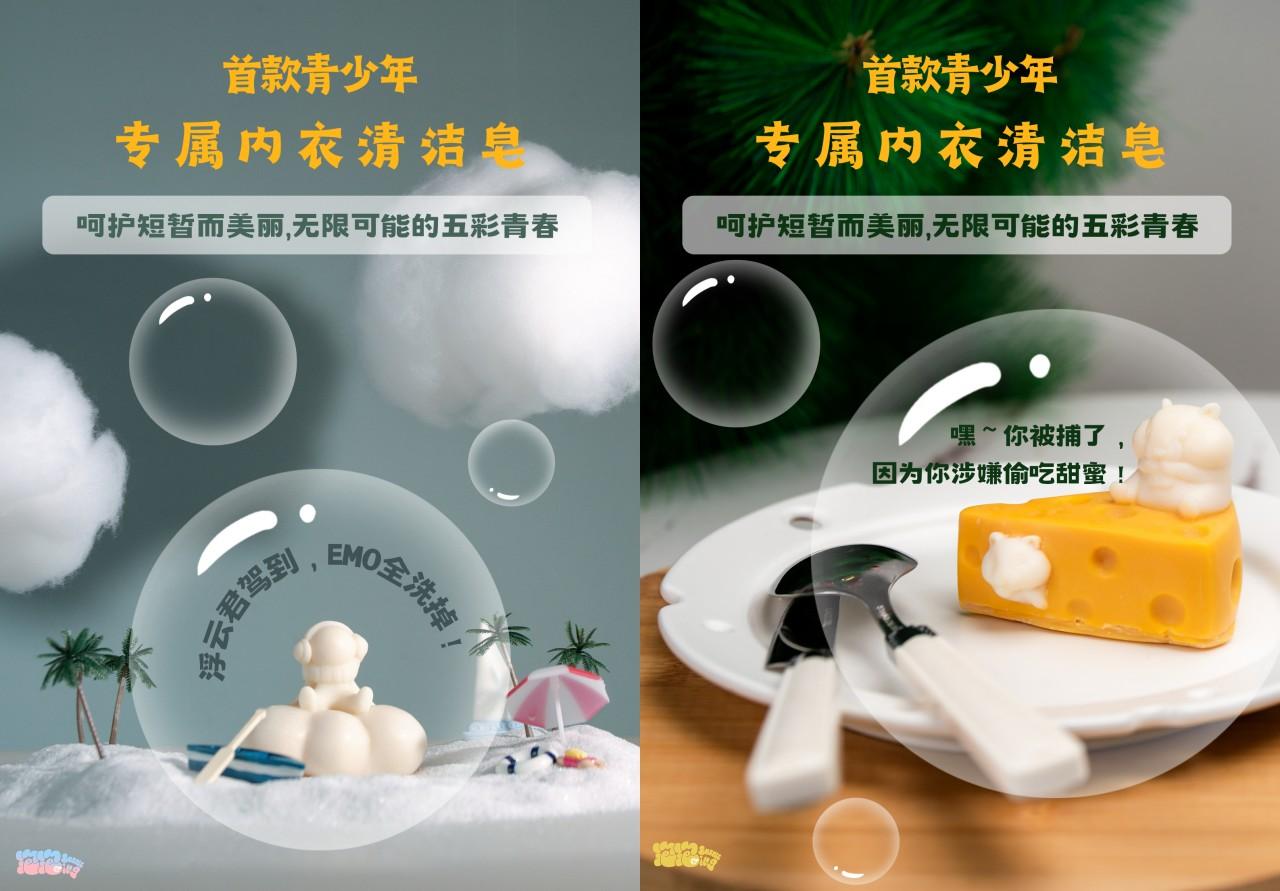 由呵護(hù)青春的專業(yè)洗護(hù)品牌--成都泡泡ING工作室?guī)砬嗌倌陮賰?nèi)衣皂:浮云皂&芝士皂,以它們獨特的皂型,勢必在青少年洗護(hù)品牌市場掀起一陣青春風(fēng)暴。