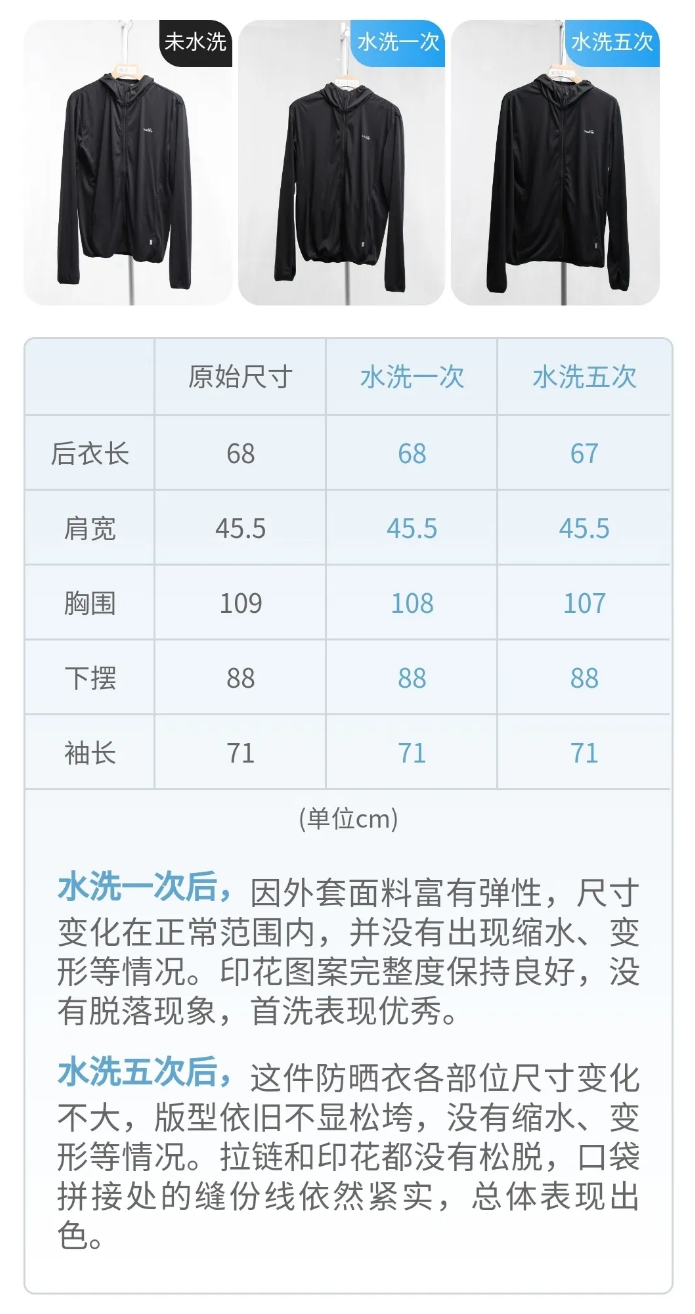 蓋得測(cè)評(píng)員總結(jié)Ohsunny是國(guó)產(chǎn)防曬服飾品牌,本次推薦的這款黑色防曬外套實(shí)測(cè)表現(xiàn)出眾,我們用專業(yè)紫外線測(cè)量?jī)x,分別對(duì)未洗、水洗5次兩種狀態(tài)下的同款防曬衣進(jìn)行測(cè)試,結(jié)果顯示:兩種狀態(tài)下防曬衣的紫外線阻隔率均在99.5%以上,對(duì)應(yīng)指數(shù)達(dá)UPF50+,防護(hù)效果持久可靠,并未因多次洗滌而大打折扣。