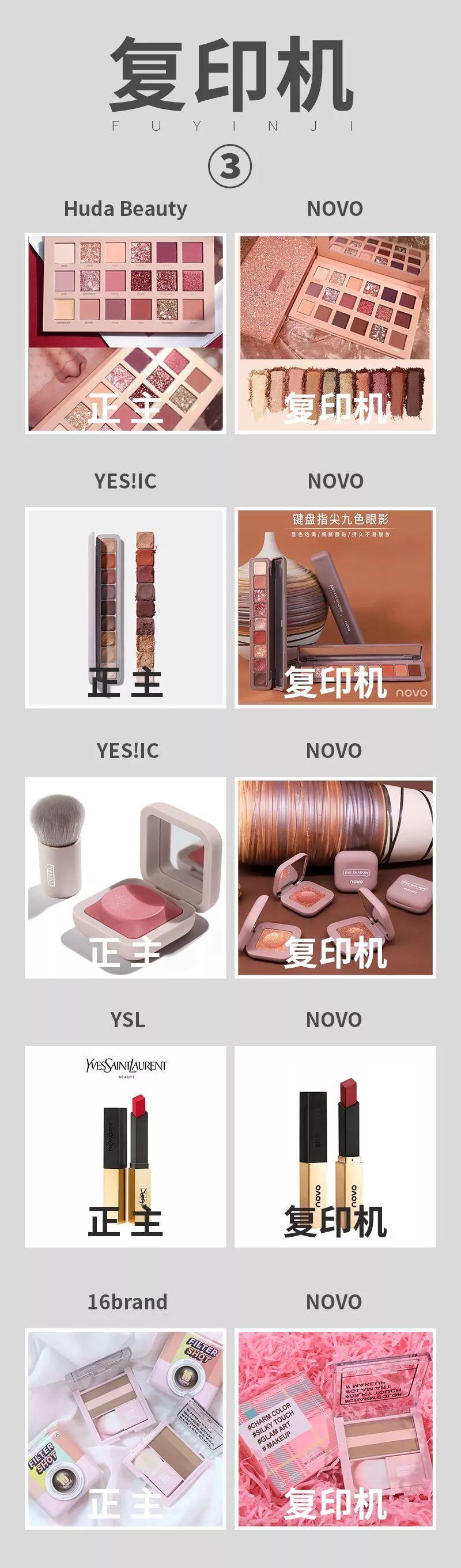 彩妝品牌NOVO的產(chǎn)品看起來眼熟度也是高達90%,而且它是無差別攻擊,不管是國外,還是韓國小眾品牌,還是國內(nèi)新銳品牌,只要是它看上的,統(tǒng)統(tǒng)都不放過。