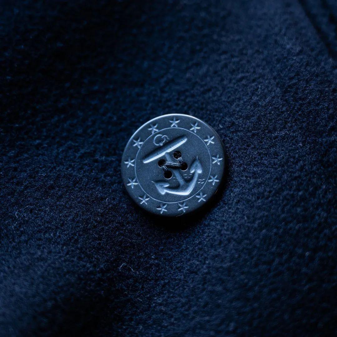 相對于剛剛的 Schott NYC,BONCOURA 就小眾得多了,作為一家專注于打造高品質(zhì)且永不過時(shí)的日本服飾品牌,雖然成立時(shí)間只有短短十二年,但在日本也小有名氣。他們家的這件海軍藍(lán) Pea Coat 就是以 1910 年代的美國海軍大衣為靈感,采用原創(chuàng)的梅爾頓羊毛并在老式織布機(jī)上編織而成,具有一種有別于普通 Pea Coat 的柔軟細(xì)膩質(zhì)感。同時(shí)內(nèi)襯的千鳥紋多少散發(fā)著一些奢華氣息,紐扣上的十三顆五角星以及船錨也是美式海軍大衣上的經(jīng)典元素,純看圖片就嗅到一股濃烈的“老炮”韻味了。