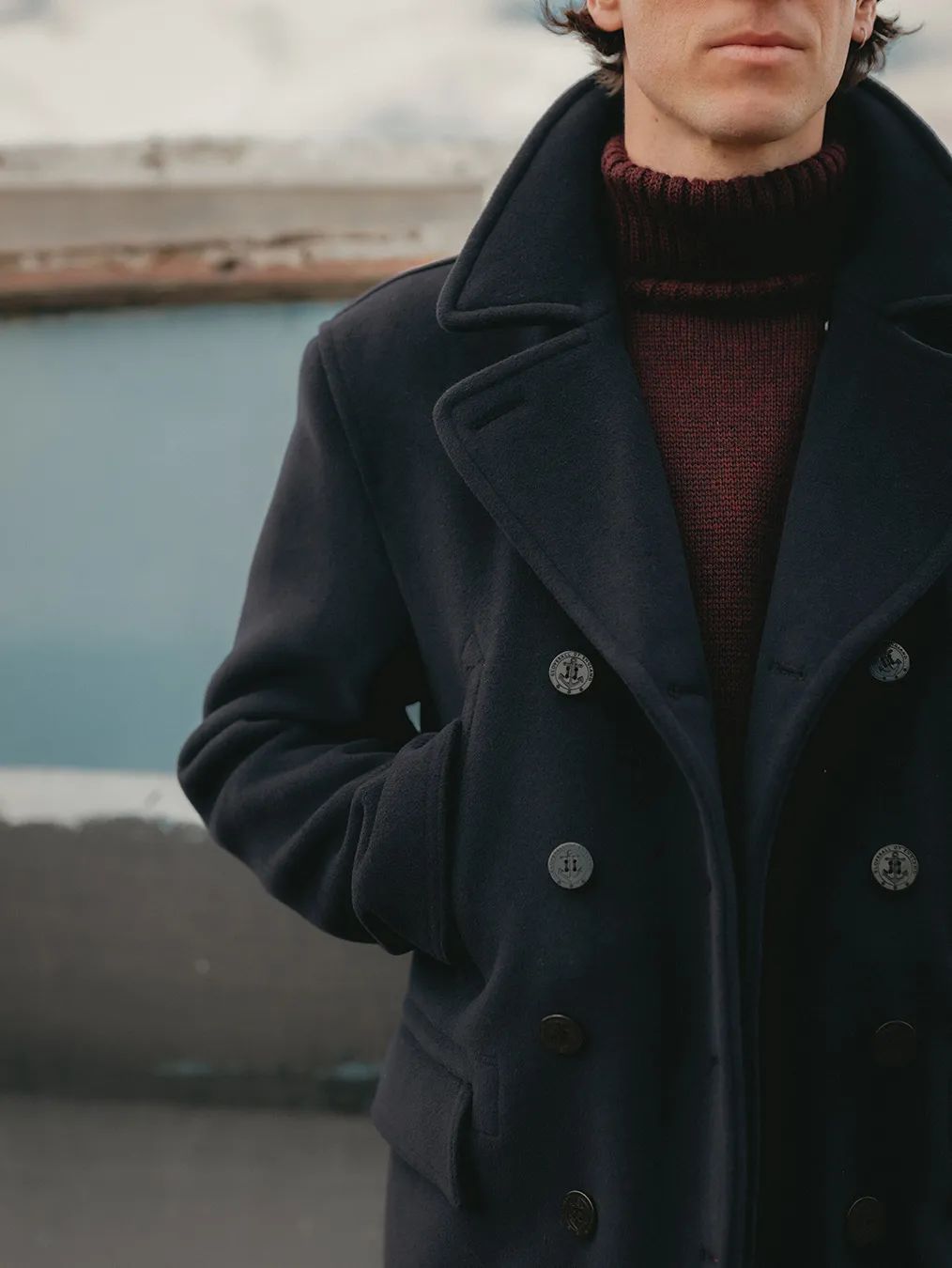 關(guān)于 Pea Coat(海軍大衣),大家應(yīng)該總會(huì)想到其標(biāo)志性的正面雙排扣以及翻領(lǐng)設(shè)計(jì)。那為什么 Pea Coat 卻是少數(shù)人之選?Ryan 不解,如果是害怕版型不好,那大可不必?fù)?dān)心。畢竟 Pea Coat 與 M65、MA-1 一樣都屬軍事款,那軍事風(fēng)格之所以能風(fēng)靡,我猜主要是因?yàn)槠?strong>挺拔的版型設(shè)計(jì)以及各種經(jīng)典元素的加持。如果是面料的話,買好一點(diǎn)的牌子也不會(huì)差到哪里去。