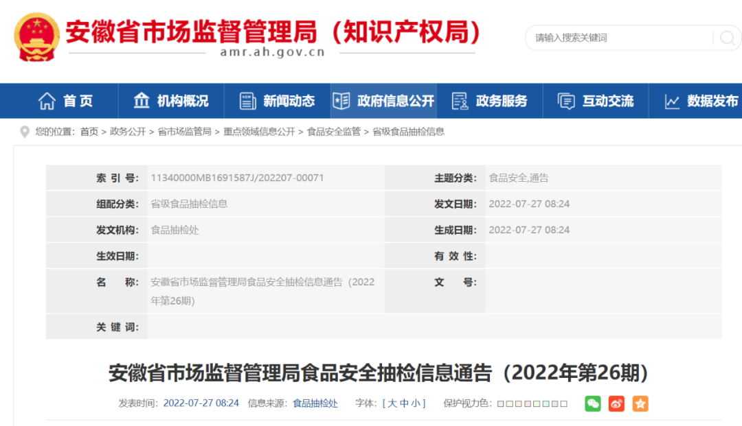 近期,安徽省市場監(jiān)管局組織抽檢6類食品352批次樣品,檢出不合格樣品11批次。不合格樣品涉及:標稱合肥瑤海區(qū)紅方炒貨廠生產(chǎn)的葵花籽、標稱合肥市瑤海區(qū)昕蕾炒貨食品廠生產(chǎn)的油炸花生米、標稱福建省龍海市瑪利特食品有限公司生產(chǎn)的美國青豆(燒烤味)、標稱銅陵九曲口商貿(mào)有限公司生產(chǎn)的紅薯淀粉(分裝)、標稱安慶市懷寧縣洪鋪鎮(zhèn)中焰食品廠生產(chǎn)的步步糕、標稱安慶市懷寧縣陽寧食品廠生產(chǎn)的懷寧貢糕等。