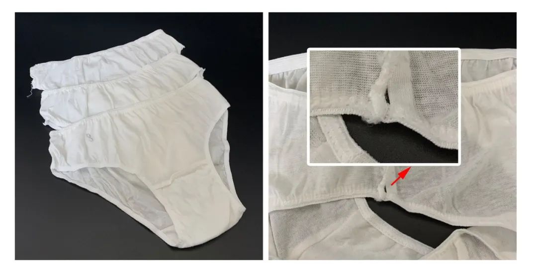 考察一次性內(nèi)褲是否獨立包裝、有無線頭、掉絮情況、厚度。