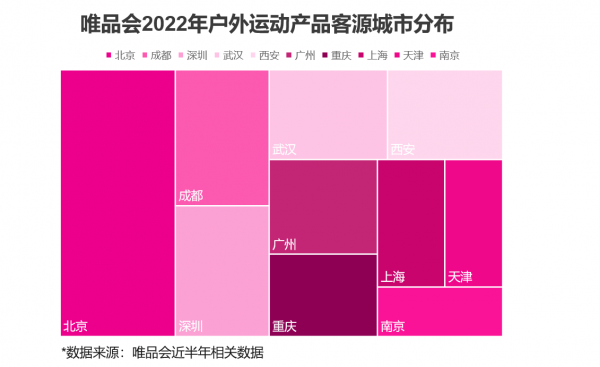插圖:唯品會2022年戶外運動產(chǎn)品客源城市分布