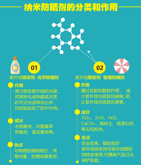 納米防曬劑是指能預(yù)防和調(diào)節(jié)日光照射引起的皮膚損傷的納米顆粒制劑。納米防曬主要是指利用納米防曬劑有效地吸收或散射對(duì)皮膚有傷害作用的紫外線。