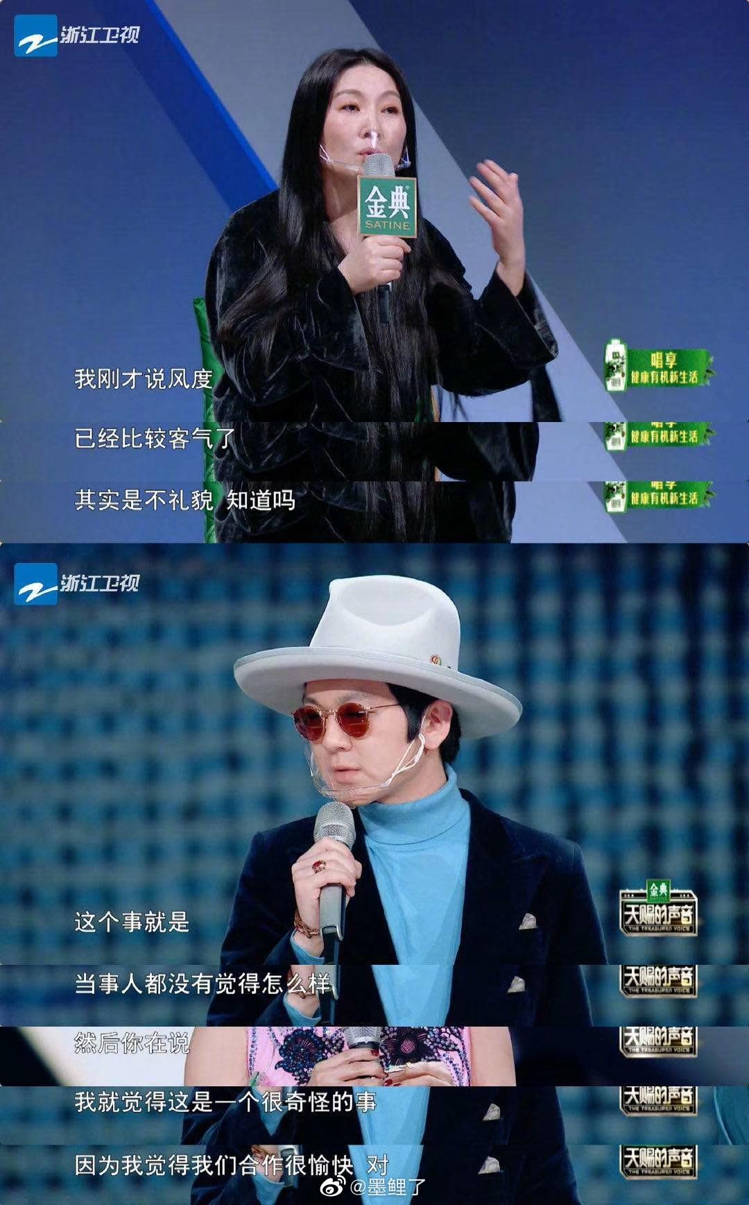 回看一下節(jié)目,是因為盤尼西林樂隊在和張薔老師合作演唱的一首串燒歌曲當中,盤尼西林唱完自己需要參與的部分(半程左右的長度)就縮到了舞臺的一邊退出表演了,于是遭到了評委的點名批評“不禮貌”。