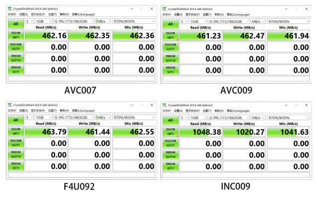 實(shí)測AVC007,AVC009以及F4U092三款擴(kuò)展塢的USB讀寫速度基本都在460MB/S左右,基本上符合5Gbps帶寬的一個(gè)傳輸速度。而INC009的讀寫速度則超過了1000MB/S,同樣符合10Gbps的帶寬。