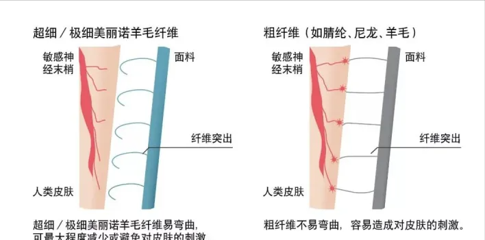 “Merino”美利奴羊毛也稱“美麗諾”羊毛,是所有羊毛品種里,纖細(xì)柔軟的一種,尤其是“直徑不超19.5微米”的超細(xì)羊毛,貼肉穿不扎人。美利奴羊毛卷曲輕盈而有彈性,表面有毛鱗片,可天然抗臭,吸收大量水氣并快速揮發(fā),不捂汗不燥熱,根據(jù)體溫變化產(chǎn)生反應(yīng),一年四季都給人舒適恒溫之感。只要你在面料成份中看到有美利奴,還標(biāo)明羊毛直徑等級(jí),這肯定是靠譜的好東西。