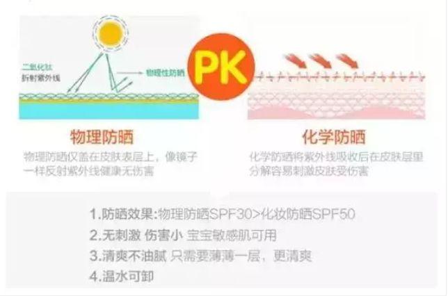 化學(xué)防曬就是皮膚先吸收一部分具有防曬作用的物質(zhì),之后再進(jìn)行防曬,而物理防曬則是在皮膚表面形成一個(gè)保護(hù)屏障,去反射紫外線,這樣就不存在有化學(xué)物質(zhì)被皮膚吸收,從而導(dǎo)致刺激激皮膚過敏的情況了,對(duì)于孩子來說更加。