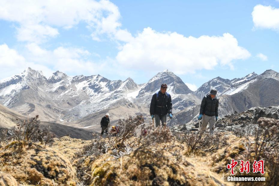 西藏山南市加查縣安繞鎮(zhèn)索囊溝海拔超4500米的草山,盛產(chǎn)加查冬蟲夏草。據(jù)悉,冬蟲夏草是農(nóng)牧民重要收入來源之一。當(dāng)?shù)夭赏谡哌€踐行“生態(tài)采挖”,挖完冬蟲夏草后,覆蓋草皮,盡量減少對(duì)生態(tài)的破壞。圖為4月22日,加查縣安繞鎮(zhèn)的村民在索囊溝采挖冬蟲夏草時(shí)留影。 中新社記者 貢嘎來松 攝