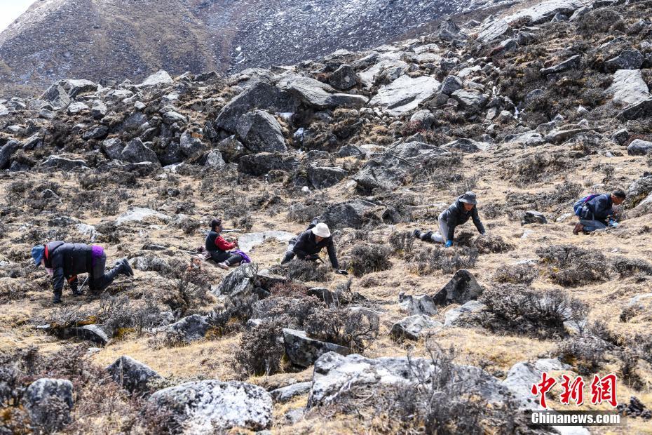 西藏山南市加查縣安繞鎮(zhèn)索囊溝海拔超4500米的草山,盛產(chǎn)加查冬蟲夏草。據(jù)悉,冬蟲夏草是農(nóng)牧民重要收入來源之一。當(dāng)?shù)夭赏谡哌€踐行“生態(tài)采挖”,挖完冬蟲夏草后,覆蓋草皮,盡量減少對(duì)生態(tài)的破壞。圖為4月21日,加查縣安繞鎮(zhèn)的村民在索囊溝采挖冬蟲夏草。 中新社記者 貢嘎來松 攝