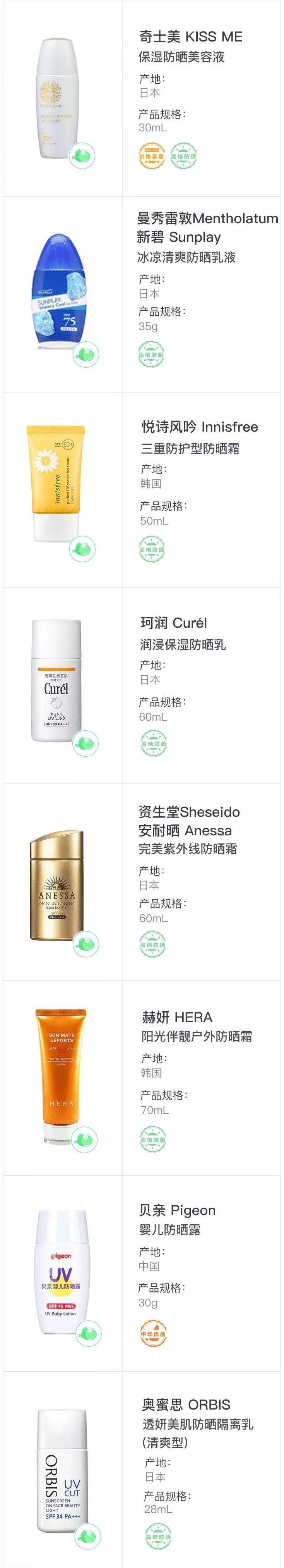 從16款防曬產(chǎn)品中