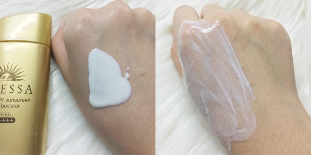 使用感:透明色的水狀,不用手指推,就能看到有多水潤(rùn)了吧,超清爽!沒(méi)有潤(rùn)色效果,但防曬能力超強(qiáng)。