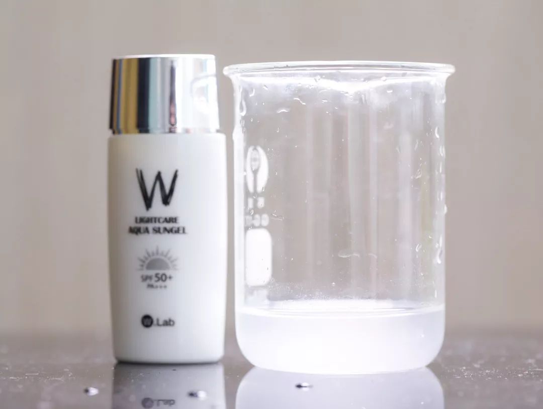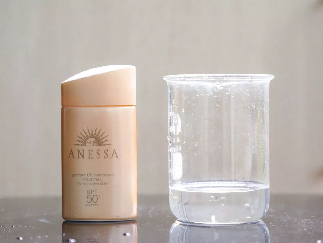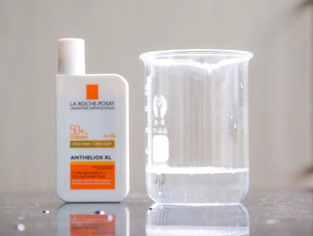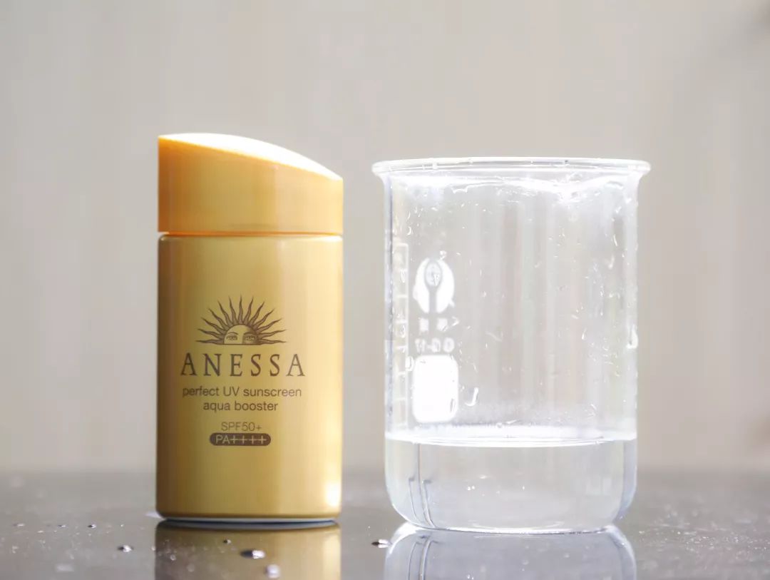 小金瓶的防汗防水能力真的。防曬霜擠入杯中攪拌之后,水依舊清澈見(jiàn)底,完全不溶于水。