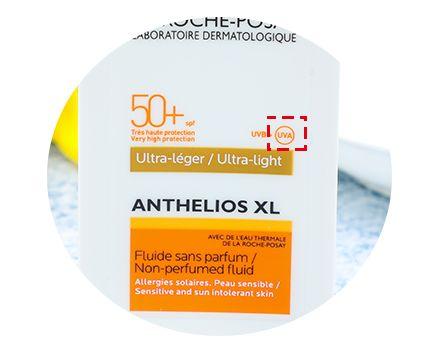 還有一個(gè)方法可以判斷,歐美系的防曬,只要PA值大于SPF數(shù)值的三分之一,產(chǎn)品上就會(huì)出現(xiàn)防UVA的標(biāo)識(shí)——一個(gè)畫著圈的UVA標(biāo)志。