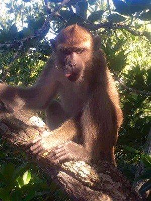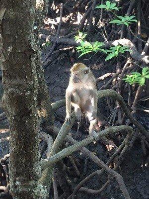 上船前李導(dǎo)帶著我們先去紅樹林碼頭吃點(diǎn)心,一種油炸的小吃,還有沙巴茶。這里的紅樹林碼頭是一家當(dāng)?shù)厝碎_的餐廳,大家若是在這里請(qǐng)注意不要噴防蚊水,因?yàn)楫?dāng)?shù)厝撕懿幌矚g這個(gè)味道,可以上船后在噴,吃完點(diǎn)心上船后李導(dǎo)帶著我們?nèi)ふ议L(zhǎng)尾猴,用李導(dǎo)話說(shuō)看猴子這個(gè)需要緣分,猴子每次出現(xiàn)的時(shí)候大家都會(huì)特別激動(dòng)。