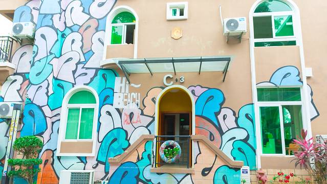 三亞 有大片涂鴉墻的地方不多,梧桐墅酒店這里酷女孩們肯定喜歡。梧桐墅酒店就在市區(qū)附近,導(dǎo)航直接就能找到,過(guò)來(lái)方便。