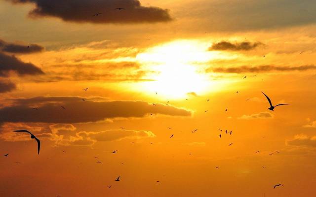 天空像是被火燒了一樣,當(dāng)我看到天際那枚圓圓的咸蛋黃時(shí),心情特別激動(dòng)。突然,一陣清爽的晚風(fēng)撲面而來(lái),此刻一切煩惱與疲憊都已置之度外。