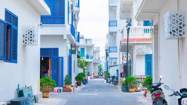 天涯鎮(zhèn)位于 三亞 市西部,擁有風(fēng)光旖旎的紅塘、三美兩大海灣,走進(jìn)這里的街巷,有種走在 圣托里尼的錯(cuò)覺(jué),因此,這個(gè)藍(lán)白小鎮(zhèn)也被游客稱為: 三亞 版 圣托里尼 。
