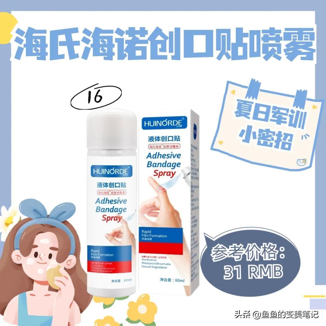液體創(chuàng)口貼比普通的更方便,它快速成膜,能抑菌消炎。噴的部位也不會(huì)因?yàn)槟_步包扎而發(fā)白,也不怕沾水進(jìn)水,即使不是軍訓(xùn),日常也可以備著。