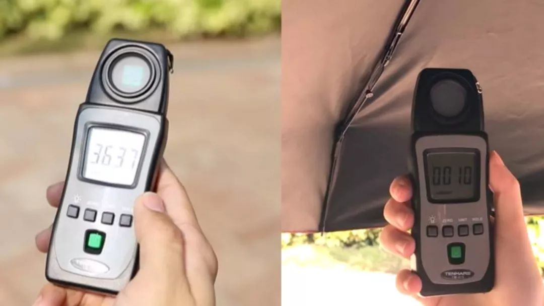 撐開這把傘后,紫外線指數(shù)從 3000+ 降到了 10+ ,防曬效果如此強悍。