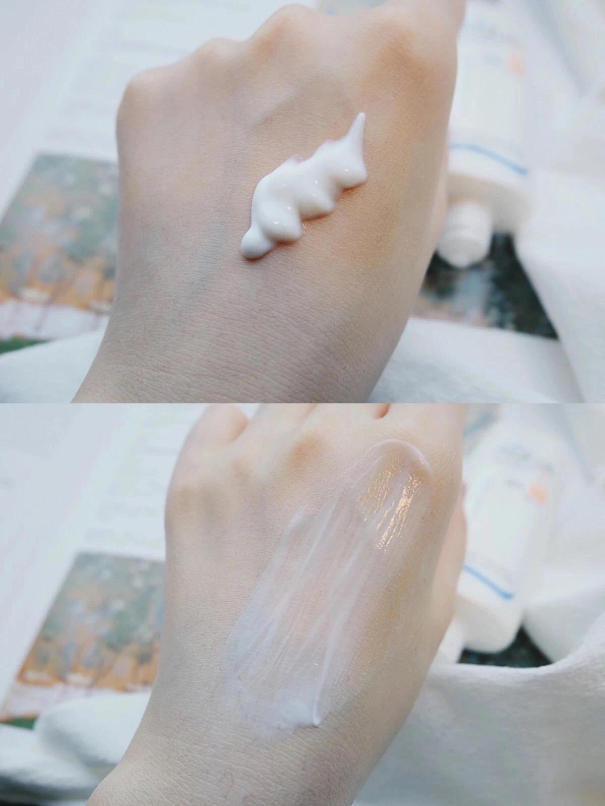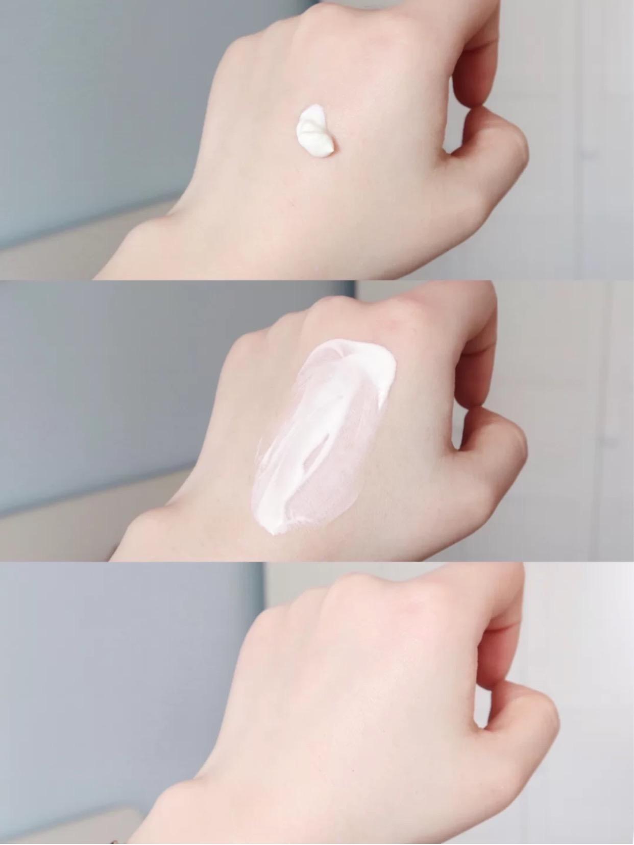 乳液質(zhì)地,幾乎沒有流動性,好推開,味道比較淡,推開透明沒有潤色果,與小咔自己全年愛用的蘭蔻清爽版防曬霜是姐妹,基本上就是味道跟微微質(zhì)地上不一樣,其他的都是一樣的哈,包括整體的配方。