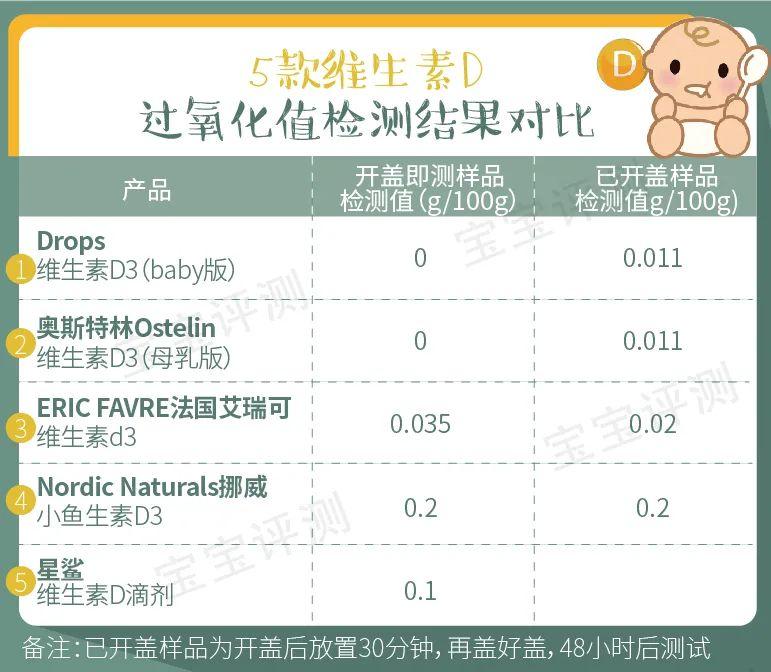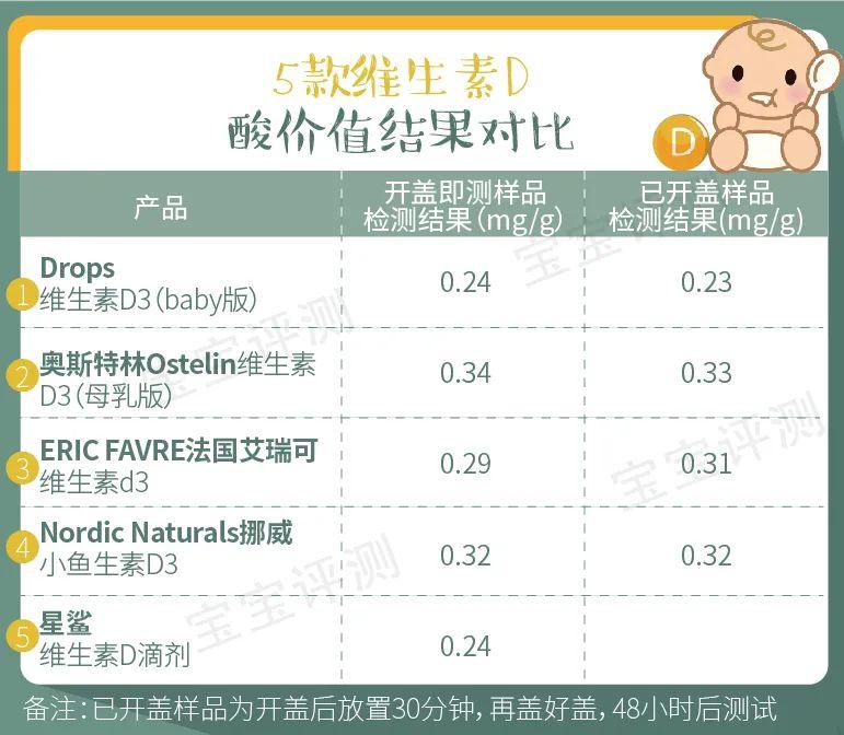 從測(cè)試數(shù)據(jù)來(lái)看,嬰兒版和兒童版的維D實(shí)測(cè)值都相對(duì)比較接近標(biāo)稱值,符合國(guó)標(biāo)規(guī)定。油脂質(zhì)量的表現(xiàn)同樣,過(guò)氧化值為0,酸價(jià)值也低。