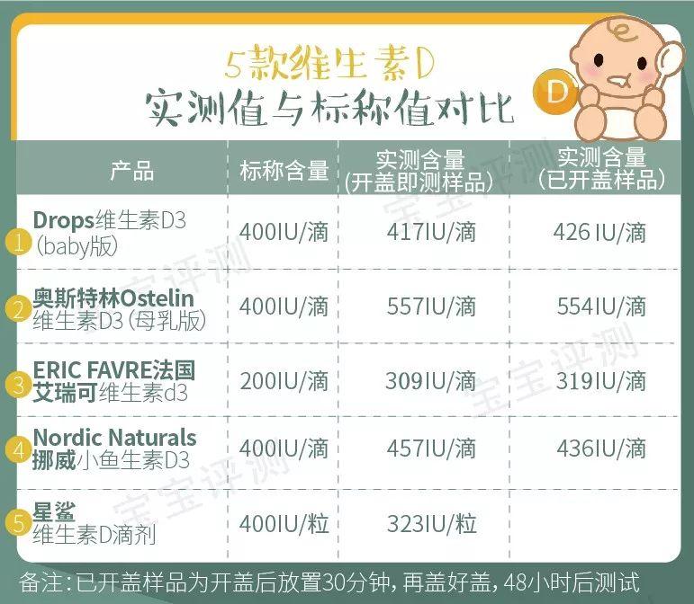 其中,更接近標(biāo)稱值的是Ddrops。原則上,越接近標(biāo)稱值越好,更“真材實(shí)料”,也更容易讓家長(zhǎng)掌握補(bǔ)充的量。