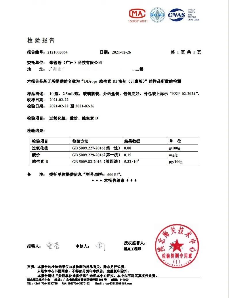 為了驗(yàn)證這款產(chǎn)品品質(zhì)的穩(wěn)定性,2021年2月,笨爸爸又將這款產(chǎn)品重新再進(jìn)行了一次測(cè)試,這次既測(cè)試了嬰兒版(400IU/滴,2.5ml/瓶,90滴),同時(shí)也測(cè)試了其兒童版(600IU/滴,2.8ml/瓶,100滴)。