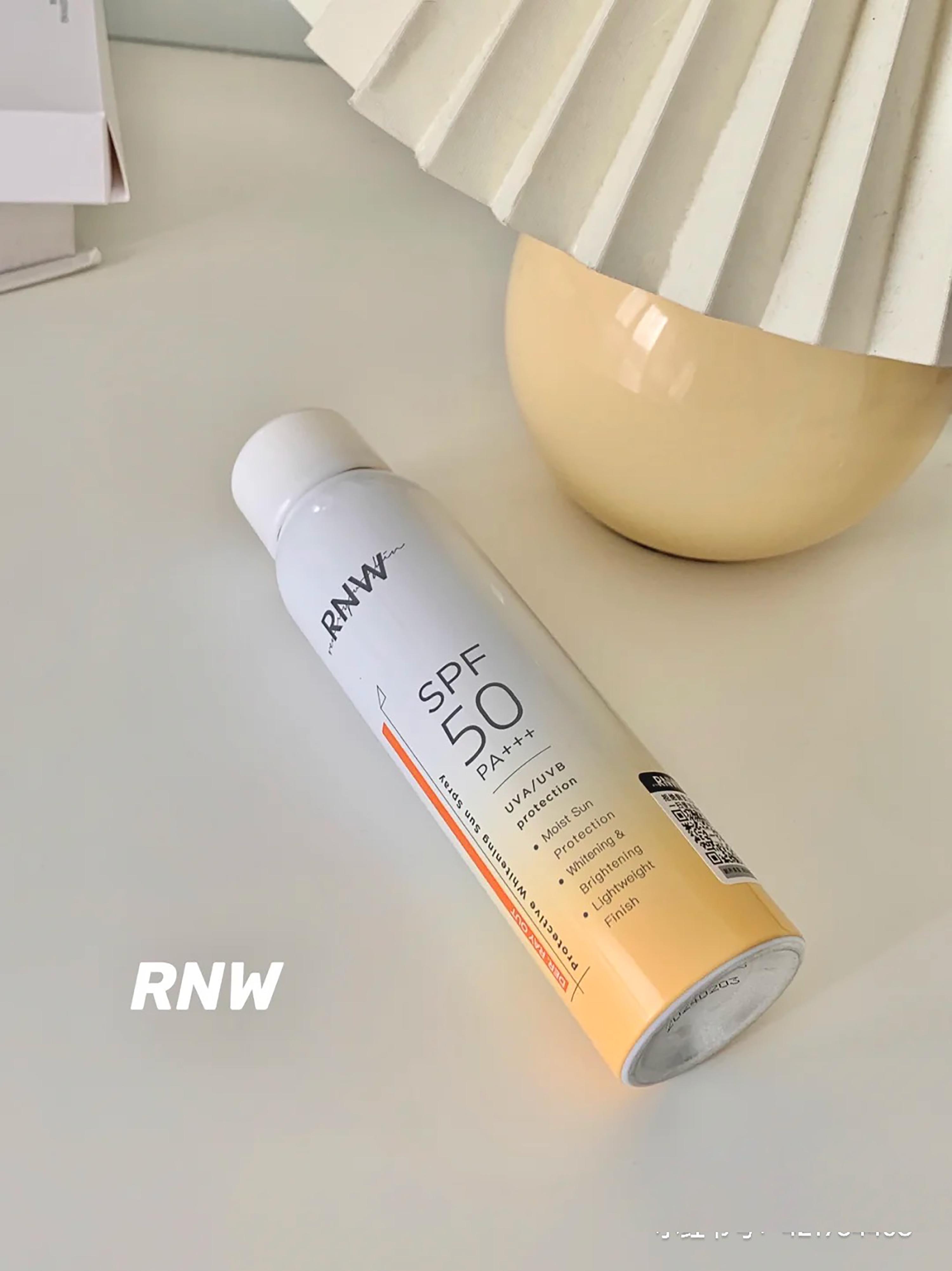 1、RNW防曬噴霧 spf50 pa+++這款防曬噴霧倍數(shù)還是蠻高的,并且它自帶“美顏效果”噴在身上輕拍下能夠讓皮膚又白又透亮。